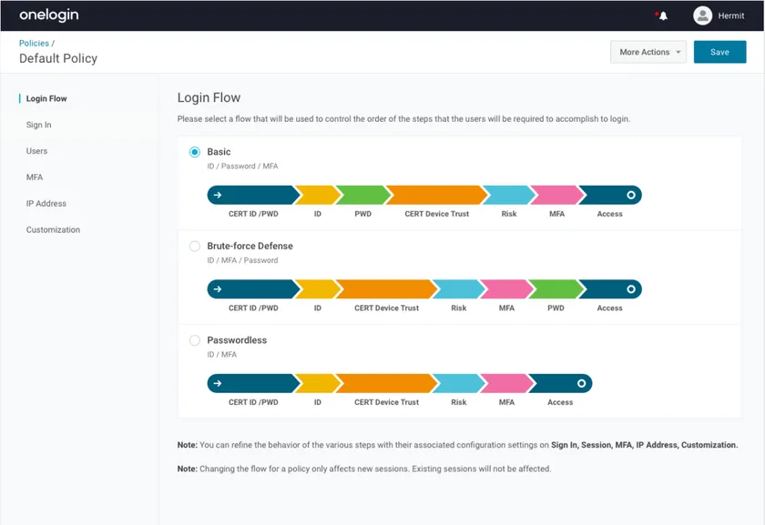 OneLogin SmartFactor Authenticationオプションは、OneLoginへのログインをリスクベース認証、デバイス証明書認証やパスワードレス認証に対応させる、複数のMFA機能を含む認証強化パッケージです。