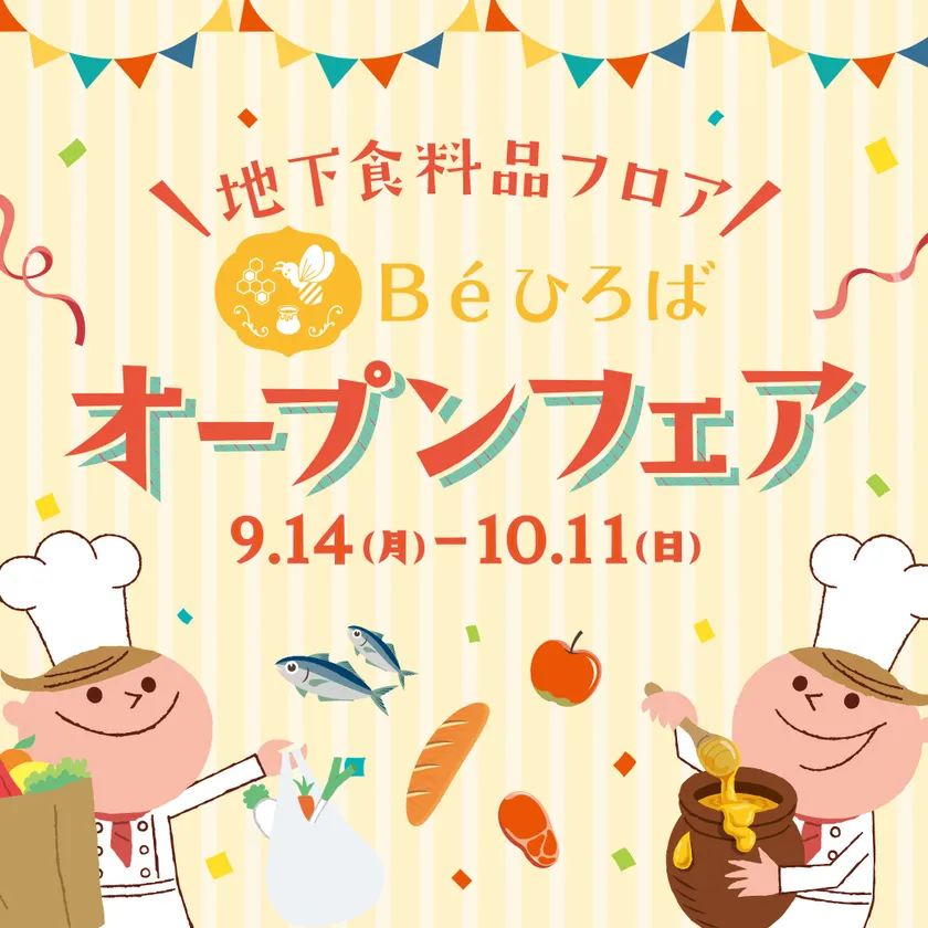 B1階フレッシュマーケット生鮮ショップにて税込700円以上お買上でBeひろば誕生を記念したオリジナルマスクケースを1個プレゼント!