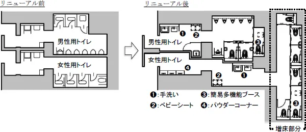 ・トイレブースを増設(男性用に1か所、女性用に2か所増設)