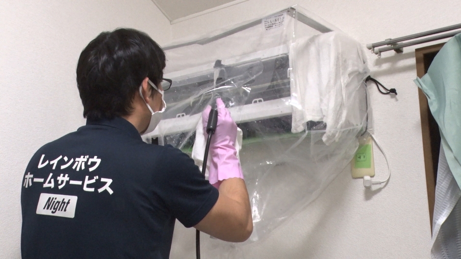 夜中の11時。この日藤田さんが向かったのは今年20歳を迎える一人暮らしの大学生のお宅。1年以上放置していたエアコンを久しぶりにつけたところ、嫌な臭いがしたため依頼したといいます。夜にしか頼めない理由は、授業のあと、所属しているゴルフ部で毎晩遅くまで練習をしているから。高圧洗浄機でエアコンの汚れを落としていく藤田さんですが、騒音が激しい一般的なジェットタイプの洗浄機は使わず、夜は多少時間がかかっても静かに清掃することを選び、威力が弱い簡易型できれいにしていきます。
