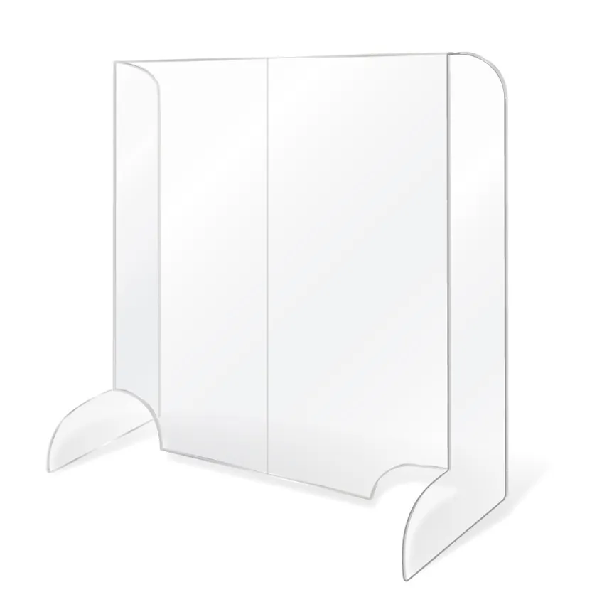 イガラシプロ 製作の、レジカウンター用・飛沫等飛散予防シートスタンドは、折り曲げて置くだけ、移動も楽々な、卓上用・飛沫感染予防用の透明仕切りスタンドです。会話中や食事中のせきやくしゃみによる飛沫感染を軽減する効果が期待できます。破損しにくい透明PET素材。リサイクルも容易です。