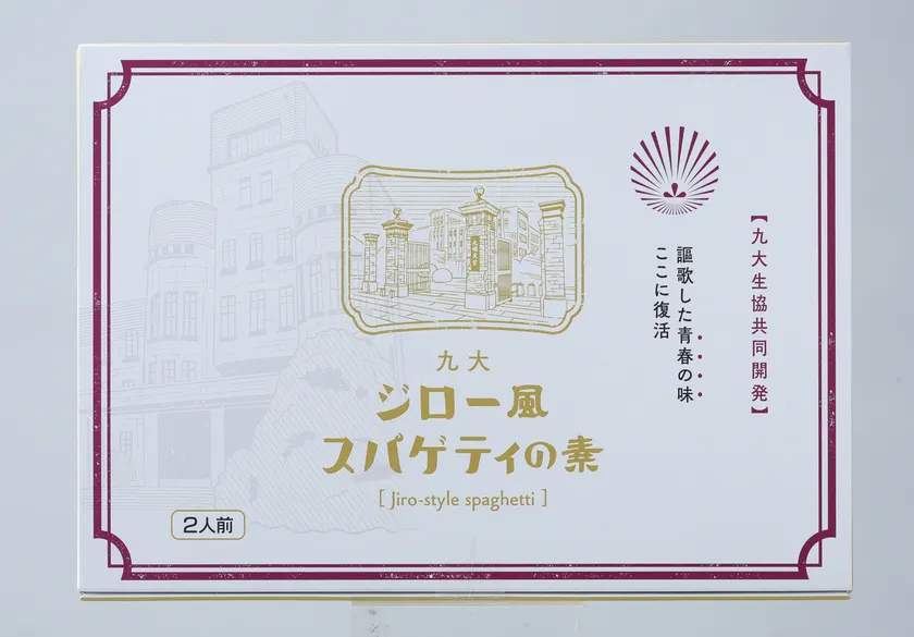 ジロー風スパゲティは1980年代に九州大学生活協同組合(通称:九大生協 福岡県)が実施したアイデアメニューコンテストで誕生し、その後30年以上親しまれた学食の名物メニューです。2015年に定番メニューから姿を消した後、2017年に飲食店「海食べのすゝめ」(ふくや経営 福岡市 2020年5月閉店)が九大生協から調理法を学んだ上で、イートインメニューとして提供。2019年にはふくやがレトルトパスタソースとして発売しました。