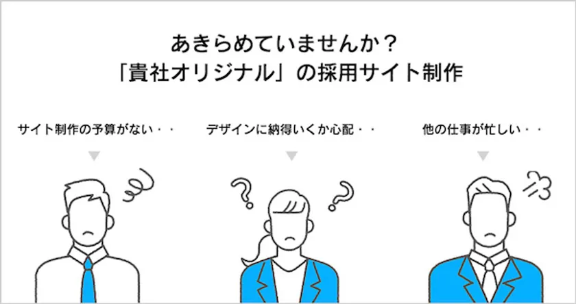 求職者のほとんどが採用サイトから情報収集している一方で、「採用サイトを作りたいけどそんなに予算をかけられない」など、自社の採用サイト制作にお悩みを抱えていらっしゃる企業様が多くいらっしゃいます。