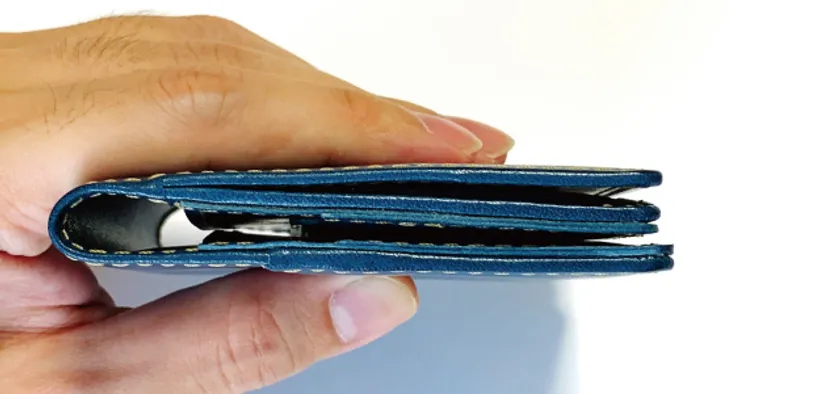 小銭スペースがBox型の場合どうしても革が重なり合う為、厚みが出てしまいます。この『...to・Moval』は、フラットに仕上げる為に1枚革を使用しています。