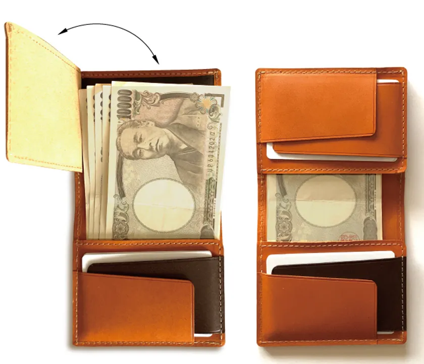 キャッシュレス&カード時代に突入した昨今ではありますが、まだまだ現金での支払いが多いのが現実です。『...to・Moval(ムーバル)』は大きく開く小銭入れ、札入れ部分も上段のカードスペースをフラップ式にする事により、お札の出し入れがスムーズに出来る構造です。30年以上、財布創りに携わってきた1級職人の経験値で作り上げたキャッシュレス時代にも対応できるコンパクトなデザインです。