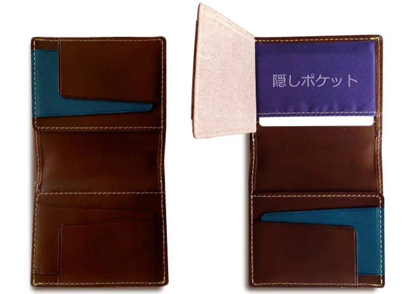 上段のカードスペースを開くと隠しポケット。