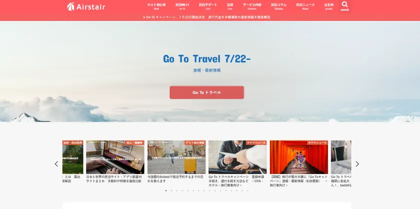 ホテル、民泊業界メディアのAirstair(エアステア)、 2020年8月に120万PVを達成!過去最高を更新
