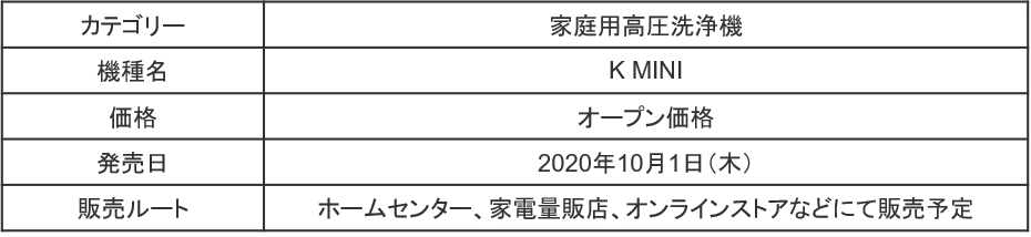 清掃機器の最大手メーカー、ドイツ・ケルヒャー社の日本法人、ケルヒャージャパン株式会社(本社:神奈川県横浜市港北区大豆戸町639-3、代表取締役社長:マーク・ヴァン・インゲルゲム)は、家庭用高圧洗浄機「KMINI」を2020年10月1日(木)より、世界に先駆けて発売開始いたします。