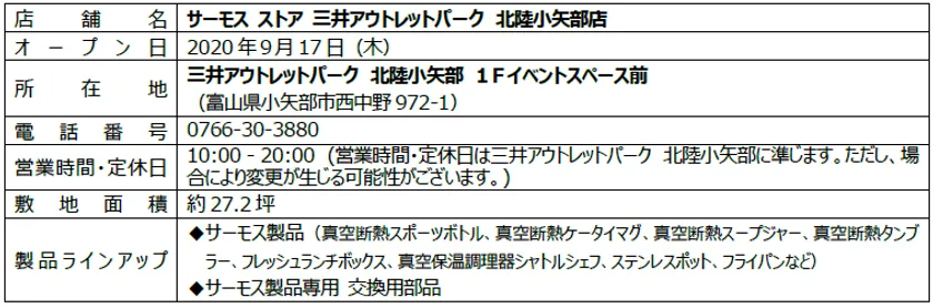 北陸エリア初のサーモス直営店 『サーモス ストア 三井アウトレットパーク 北陸小矢部店』 2020年9月17日(木)にオープン