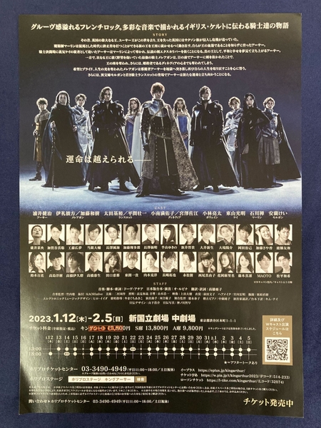 舞台版の速報1位に選ばれたのは、「ミュージカル『キングアーサー』」のチラシです。こちらの公演は、2023年1月12日(木)~2月5日(日)に新国立劇場 中劇場にて上演されます。