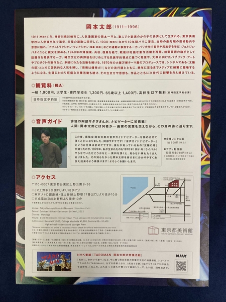 美術版の速報1位に選ばれたのは、「展覧会 岡本太郎」のチラシです。こちらの展示は7~10月に大阪展が行われたほか、2022年12月28日(水)まで東京都美術館にて開催しています。来年2023年1月14日(土)~3月14日(火)には、愛知県美術館で開催予定です。