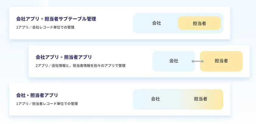 1. 会社アプリ+担当者サブテーブル管理(会社アプリ内サブテーブル)