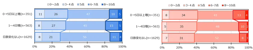 ※ 点数が高いほど負担感が小さい/満足度が高い。「5点」は1月以前と同程度。