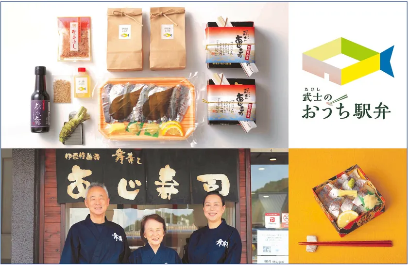 静岡県伊豆市で駅弁を販売する株式会社たけし(代表:武士 東勢(たけし とうせい)、所在地:静岡県伊豆市柏久保625-6、屋号:舞寿し)は、約25年に渡り全国の駅弁ファンに愛される「武士のあじ寿司」を自宅でつくれる「武士のおうち駅弁」を2020年10月2日に発売します。丁寧に小骨を抜き、生酢で軽く〆た伊豆近海の新鮮な鯵のほか、伊豆産のお米、天城の生わさび、修善寺の醤油、西伊豆の鰹節、秘伝のすし酢、駅弁の箱などをセットにしました。