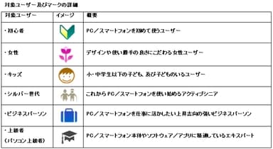 注目の新フィーチャーは、「対象ユーザーマーク」という名称のナビゲーションです。ソフトニックの専任エディターが、初心者や女性などの対象ユーザーグループを設定し、それぞれに最もお勧めする優良ソフトウェアを公正に選び抜いて「対象ユーザーマーク」を付けています。ユーザーは、例えば「初心者向け」と表示されたバナーをクリックするだけで、初心者にやさしい様々なジャンルのソフトウェアを一覧で見て入手できます。ソフトニックが誇る世界最大級のカタログから厳選されたソフトウェアは、ユーザーのPC、モバイル生活を公私両面でより豊かにしてくれます。当リリース時点での対象ユーザーグループは現在6グループで、今後増加していく予定です。