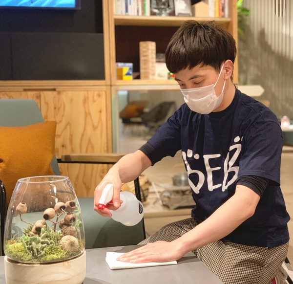 「最高水準のコロナ対策宣言」を謳う星野リゾート運営ホテルのBEBは、パブリックスペースやお部屋の清掃徹底はもちろん、入館前の検温や体調のチェックの徹底、自動チェックイン機の導入で対策はバッチリ。