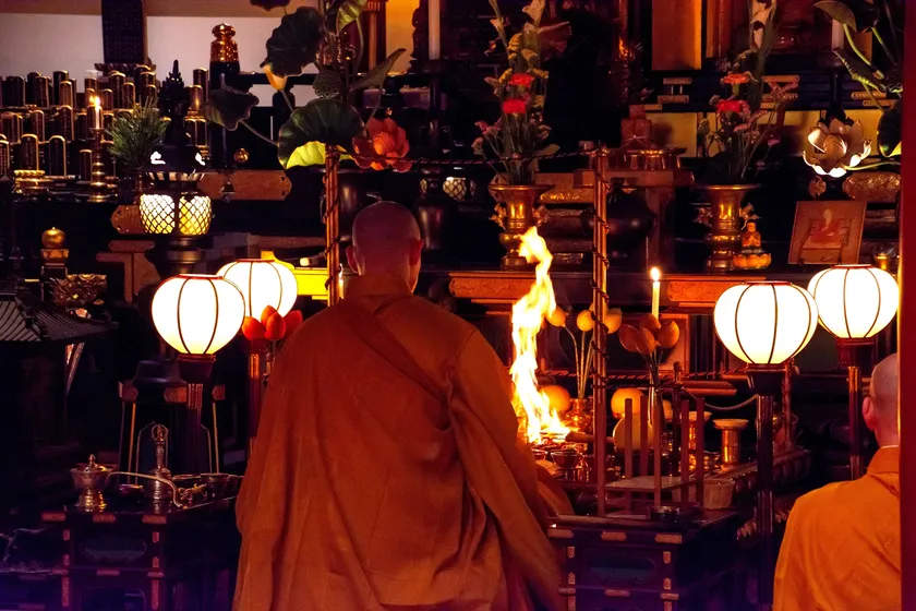 毎月21日、月並御影供(護摩祈祷会)を実施しております。御影供は檀家様に限らず、一般の方のご参列も事前予約不要で参加できます。