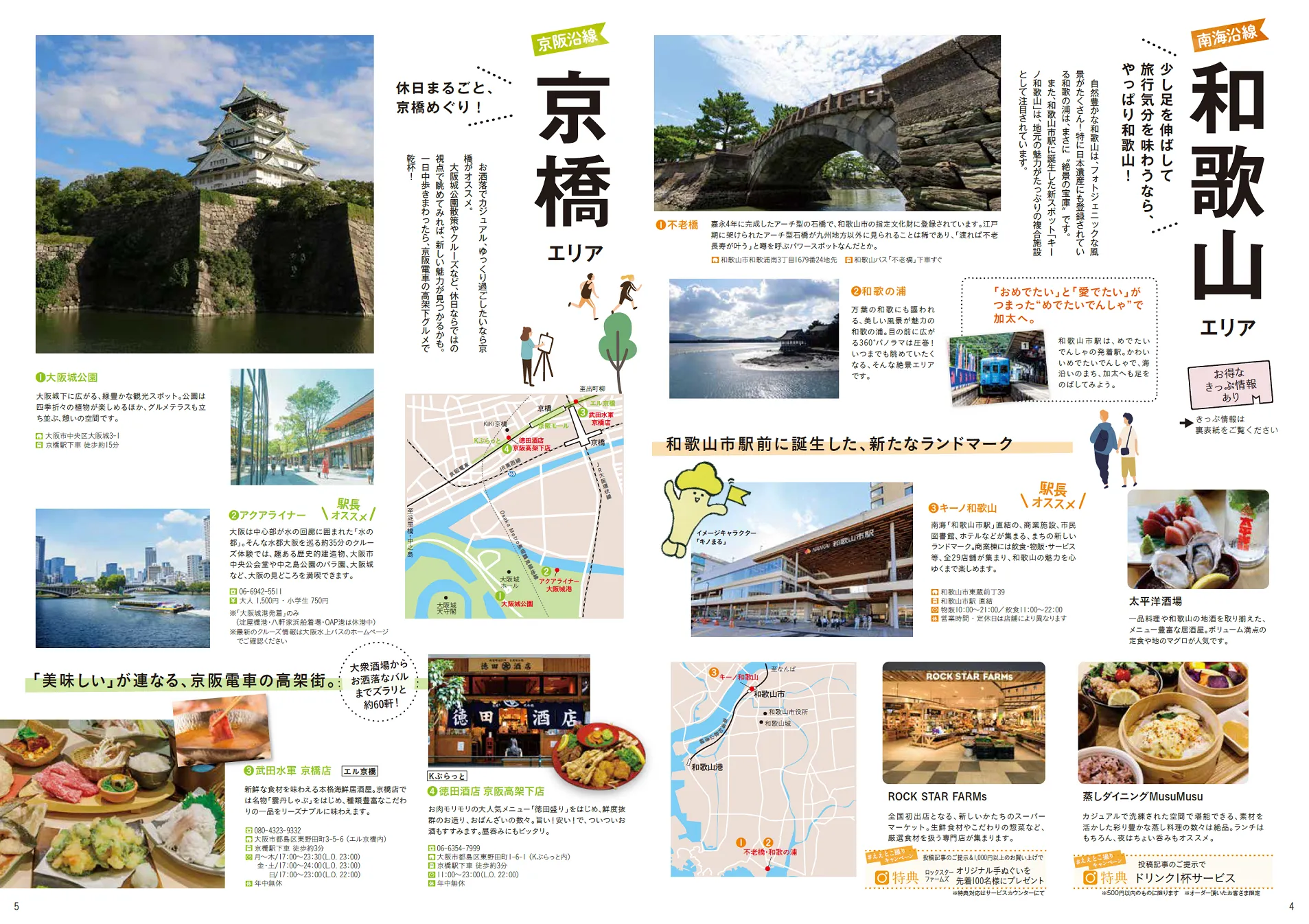 今回は、新型コロナウイルス感染症拡大防止の観点から「マイクロツーリズム」が注目されるなか、両沿線で今こそ行きたい注目エリアをご提案。大阪城散策やクルーズが楽しめる京橋エリアや、和歌の浦をはじめ自然豊かな絶景が広がる和歌山エリアなど全6エリアを紹介するパンフレット「京阪・南海沿線 日帰りええとこめぐり」を制作し、2020年9月16日(水)から京阪電車・南海電車の主要駅ほかで配布します。
