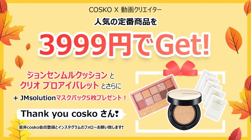 韓国コスメがお得に買える!オンラインショッピングサイト 「COSKO」にて秋イベント「COSKO×動画クリエイター」開始!
