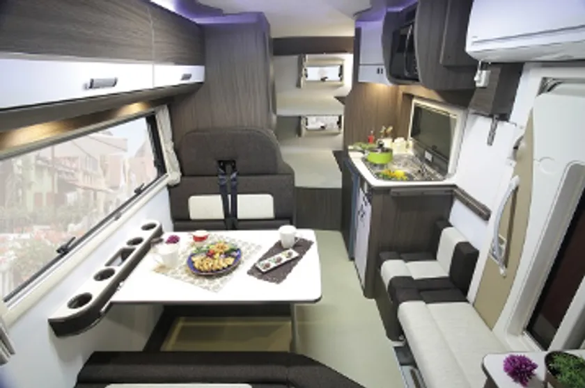 日本RV協会のアンケートでは、緊急事態宣言発令後のキャンピングカーの使い方として、「車内でテレワークをした」という回答が多数寄せられています。パソコンと通信機器をそろえれば、サブバッテリーから電源が取れ、ノートPCなどを気軽に使用できる在宅勤務の場所に。また、車内で家の中と変わらず過ごすことができるキャンピングカーは、「動く家」として、外部と遮断された状態で旅行できる道具なので、感染リスクを避けながらアウトドアライフを楽しむことができるツールです。