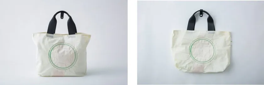 廃車となる自動車からエアバッグを回収し、強く丈夫な生地とシートベルト製造過程で余った端材の有効活用を目指しました。MODECOとそのパートナーである障害者施設の協力とトヨタの呼び掛けの下、地元愛知県内の自動車リサイクル企業の協力で繰り返し使うことのできるエコバックとして甦らせます。エコバッグに作り直すことにより、廃棄物発生の抑制と循環型社会への貢献を行うものであり、廃エアバッグの新たな資源としての活用性を、当施設におけるブランドショッピングバッグとして見出すチャレンジです。type1は廃材から作るアップサイクルを通じ廃棄物の削減を目的としております。