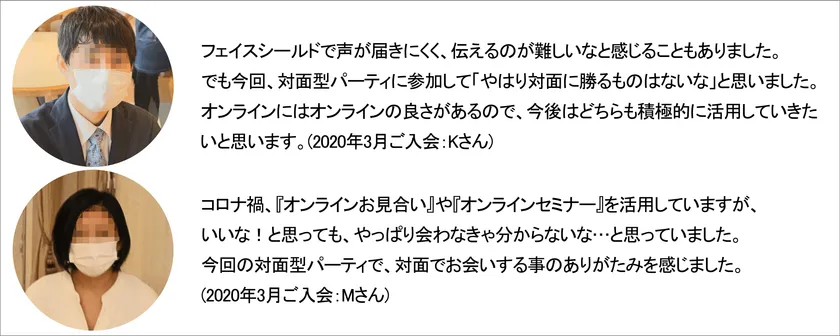 「フェイスシールド着用、会員限定パーティ」の感想をお聞かせいただきました。