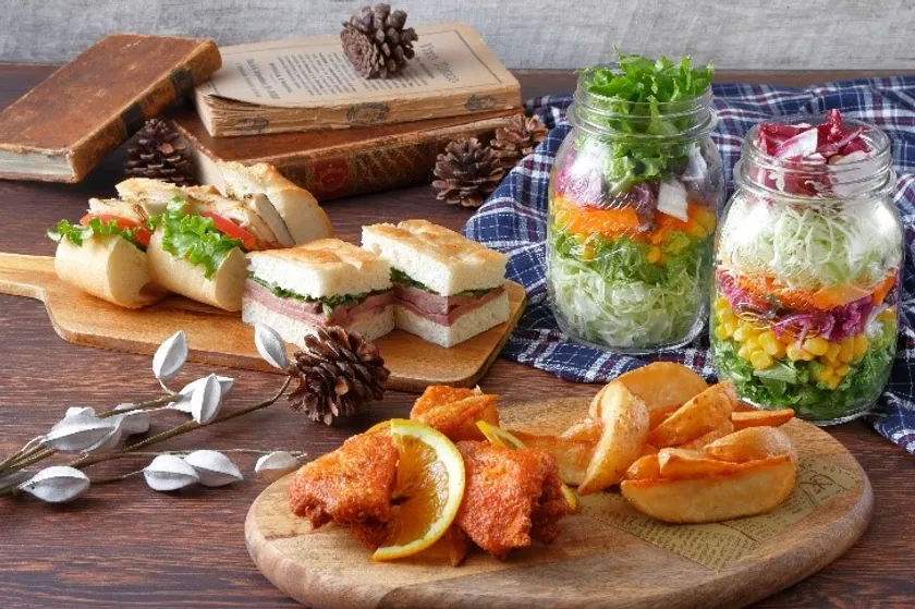 しっとりとした食感で肉のうまみが感じられる「ローストビーフのフォカッチャサンド」や「サバのバゲットサンド」、ほうじ茶の茶葉を衣に加え、オレンジのさわやかな風味をきかせた「オレンジ風味のフライドチキン」など充実したラインナップをご堪能いただけます。