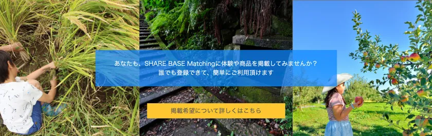 コト(体験)も、モノ(商品)も探せて予約できる! 地域の体験予約サイト「SHARE BASE Matching」が “商品販売機能”を搭載してバージョンアップ! 登録主催者を募集中!