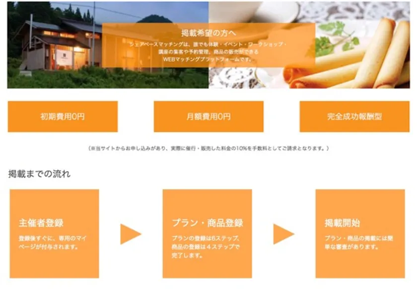 <登録・掲載費用は無料!主催者にかかる費用は10%の成果報酬のみ!>