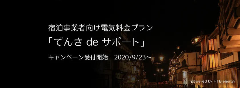 HTBエナジー株式会社(本社:福岡県福岡市、代表取締役社長:赤尾 昇平、以下 HTBエナジー)は、新型コロナウイルス感染症発生の影響により、甚大な影響を受けている観光業界に対し、宿泊事業者を対象とした、電気料金プラン「でんき de サポート」キャンペーン(以下、「本キャンペーン」という)を開始いたします。