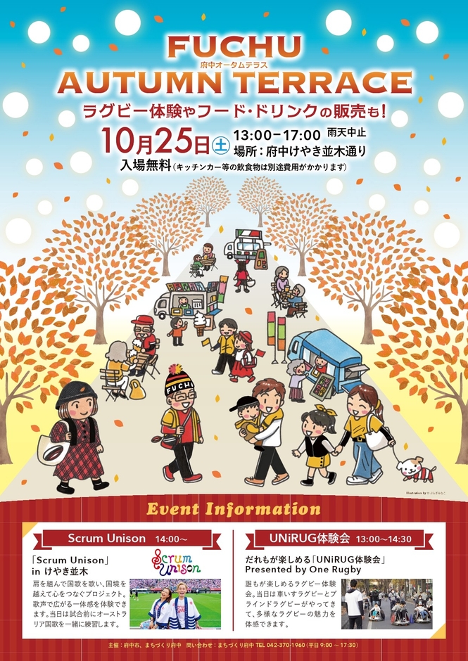 府中市とまちづくり府中(所在地:東京都府中市、代表取締役社長:槇ヶ垰俊一)は、2025年10月25日(土)に府中駅前けやき並木通りにて「FUCHU AUTUMN TERRACE 2025」を開催します。