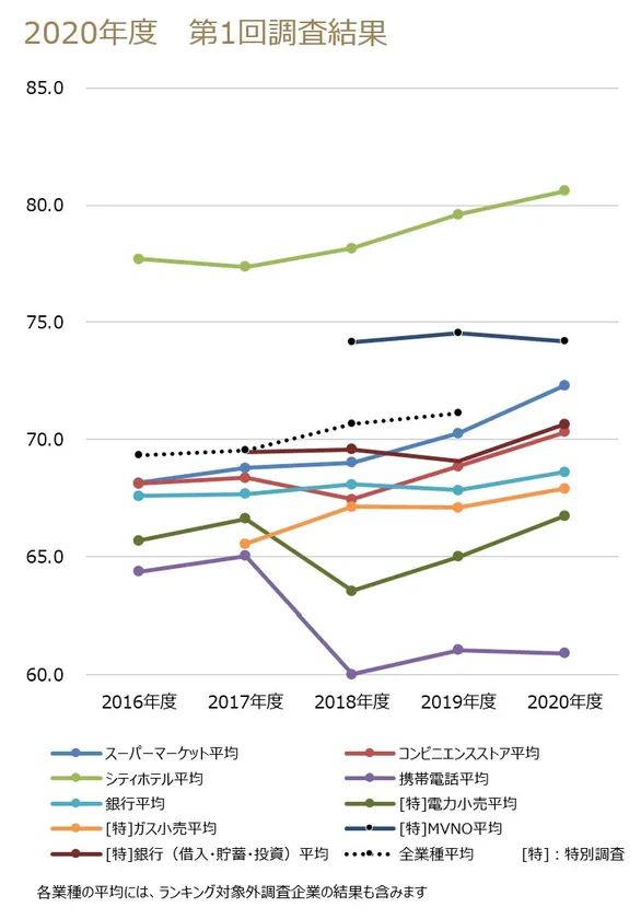 公益財団法人日本生産性本部 サービス産業生産性協議会は、2020年度JCSI(Japanese Customer Satisfaction Index:日本版顧客満足度指数)第1回調査として、9業種(スーパーマーケット、コンビニエンスストア、シティホテル、携帯電話、銀行、電力小売、ガス小売、MVNO、銀行(借入・貯蓄・投資))の顧客満足度を発表しました。主な結果は以下の通りです。