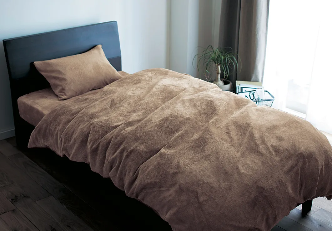 最近は、毛布がいらないモコモコとしたボリュームたっぷりの寝具が人気となっていますが、「重すぎて疲れてしまう」というお客様の声もあります。このようなお客様の声より、毛布が必要ないほどの暖かさがありながら、厚すぎず重すぎない「吸湿発熱マイクロファイバーシリーズ」を開発しました。