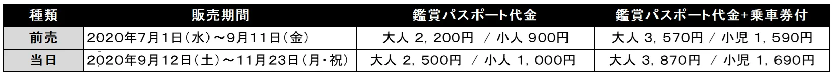 ※当日パスポート+乗車券付のチケットはe+(イープラス)、チケットぴあ、JTBレジャーチケット、PassMe!のみで販売。