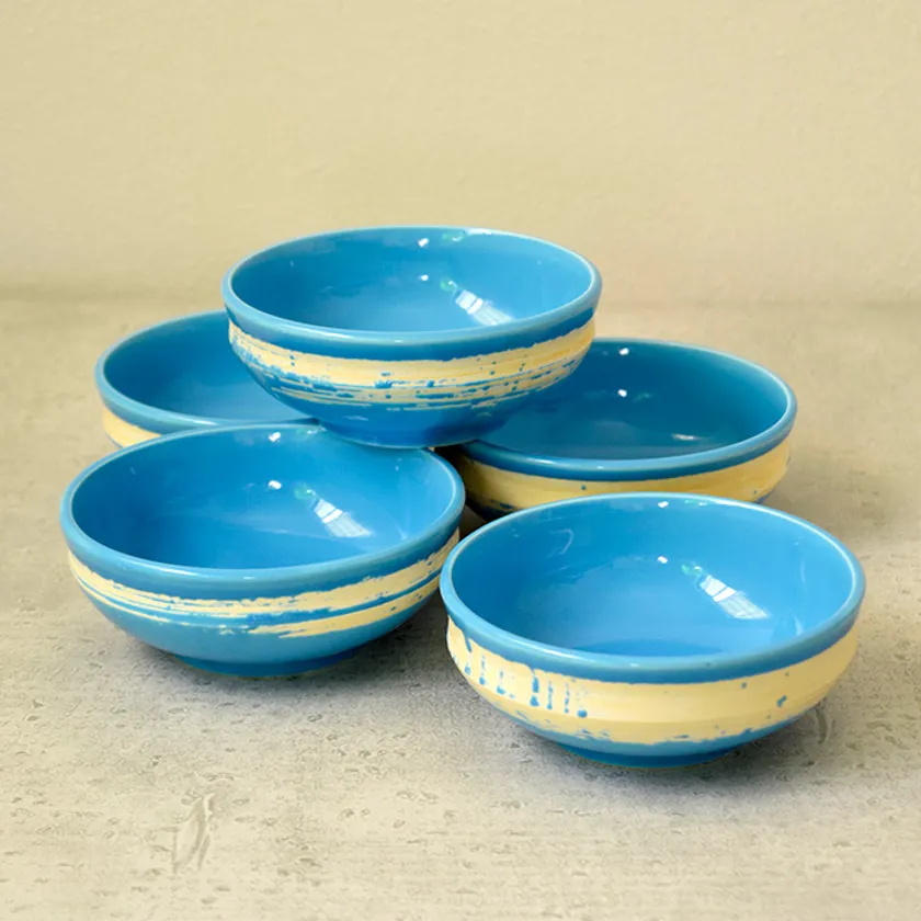 山兵虎澤製陶所 浅小鉢 5個セット 11.6cm ブルー×イエロー 999円(税込)