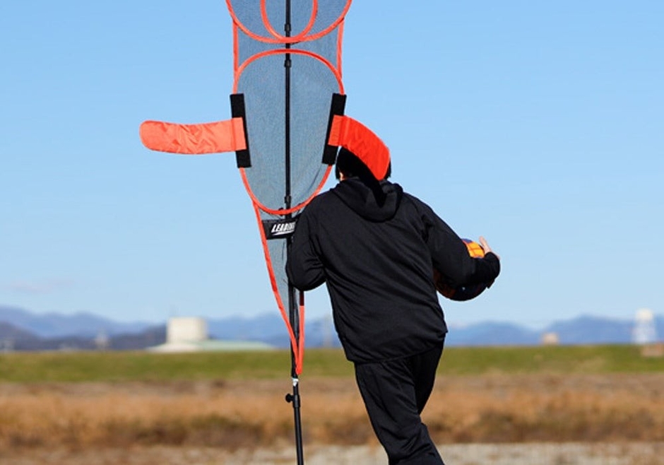 本体は強いワイヤーと通気性あるメッシュを採用。支柱は回転するようになっており、練習に没頭して身体が本体に当たっても、衝撃を受け流し、支柱自体もしなることなく、練習に集中できます。土台となる注水タンクはコンパクトながらも重量があり、屋外の練習でも風に負けずに自立してくれます。