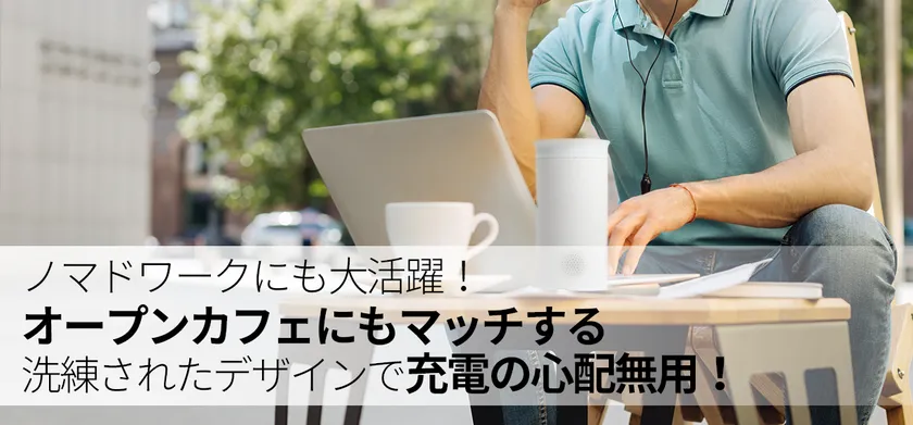 コロナ禍の在宅ワークで三密を避けたカフェやオープンテラスを使用する人が増えてきております。外での仕事は気分転換にもなりますが、スマホやPCの充電が気になってしまいます。PhewMan 100は持ち運びに便利なだけではなく大きなパワーを持っています。