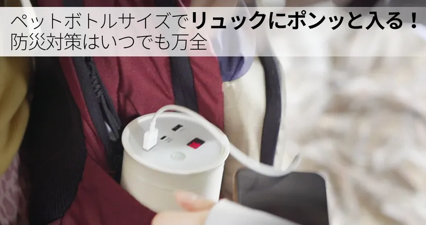 まだあまり認知はされておりませんが、ポータブル電源という非常用のバッテリーは多く存在しております。しかしポータブル電源の多くは3kgを超え、サイズも大きく、いざ避難をするとなると運びにくいのが現状です。