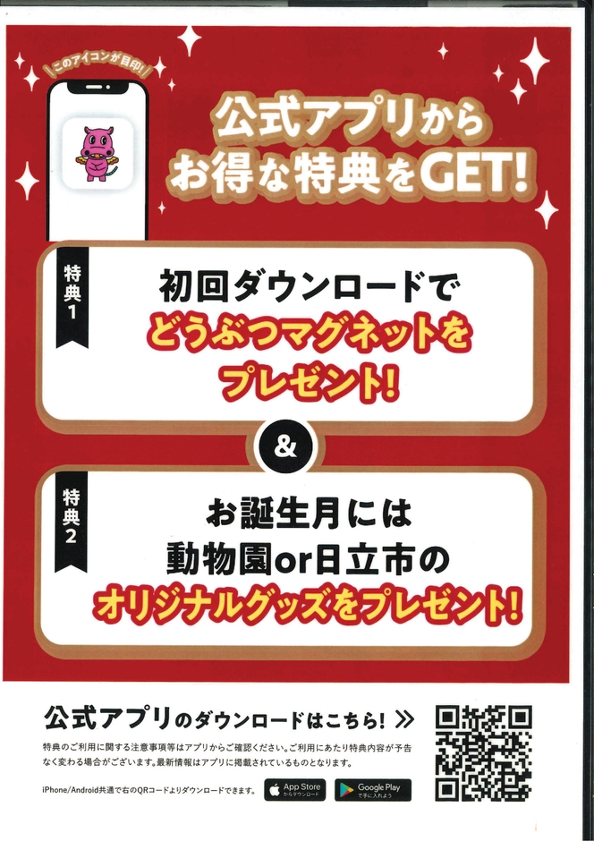 ※アプリ特典については、かみね動物園への入園が必要となります。