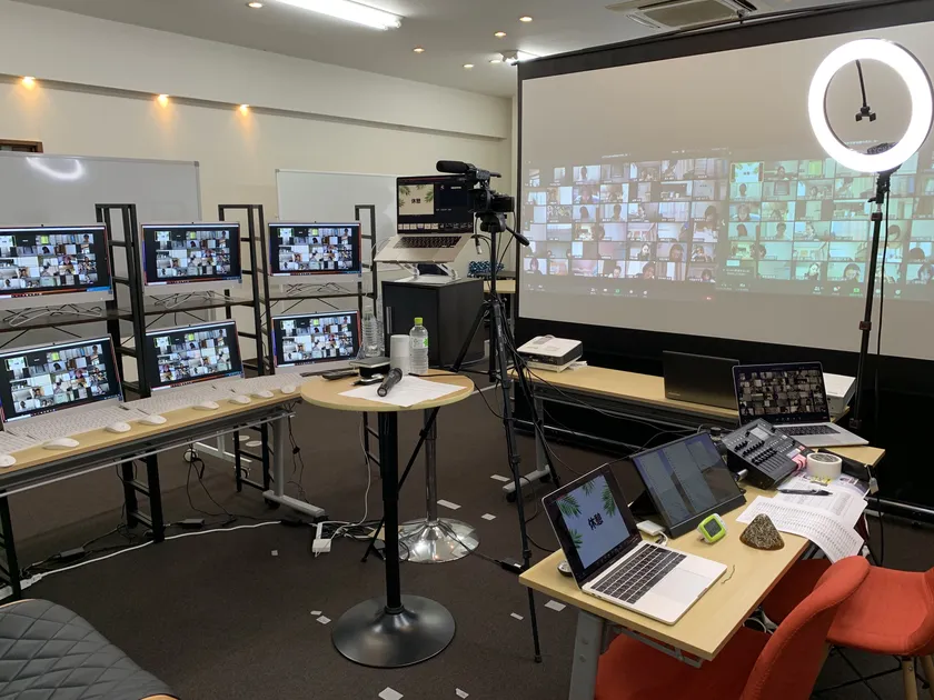 兵庫事務局にある「1万人母親講座」配信拠点、モニターは10数台設置される予定