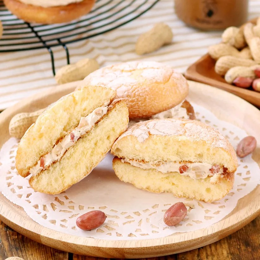 バターの塩味とピーナッツの香りと食感を、ふんわりとした甘みのあるブッセ生地でサンドしました。シンプルな素材同士のマリアージュをご堪能いただけます。