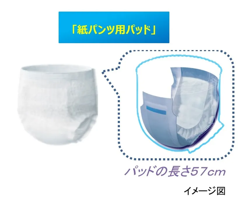 そこでこの度、夜間の寝ている姿勢に着目し、横向き寝でも横モレ安心、一晩中あんしんして眠れる、ライフリーブランドの紙パンツ用パッド史上で最長の57cm、安心ロングサイズ『ライフリー ズレずに安心 紙パンツ用パッド』2種類の吸収量を、全国で発売することにしました。