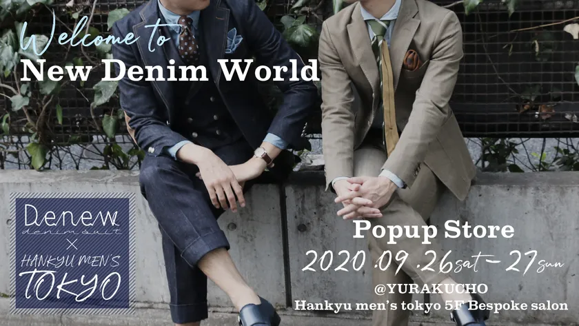 南青山のデニムスーツ専門店「Denew(デニュー)」(運営:株式会社ユーエフ、本社:東京都港区、代表取締役:森 雄治)は、9月26日(土)~27日(日)の2日間でポップアップストアを阪急メンズ東京/HANKYU MEN'S TOKYO(有楽町)に出店いたします。