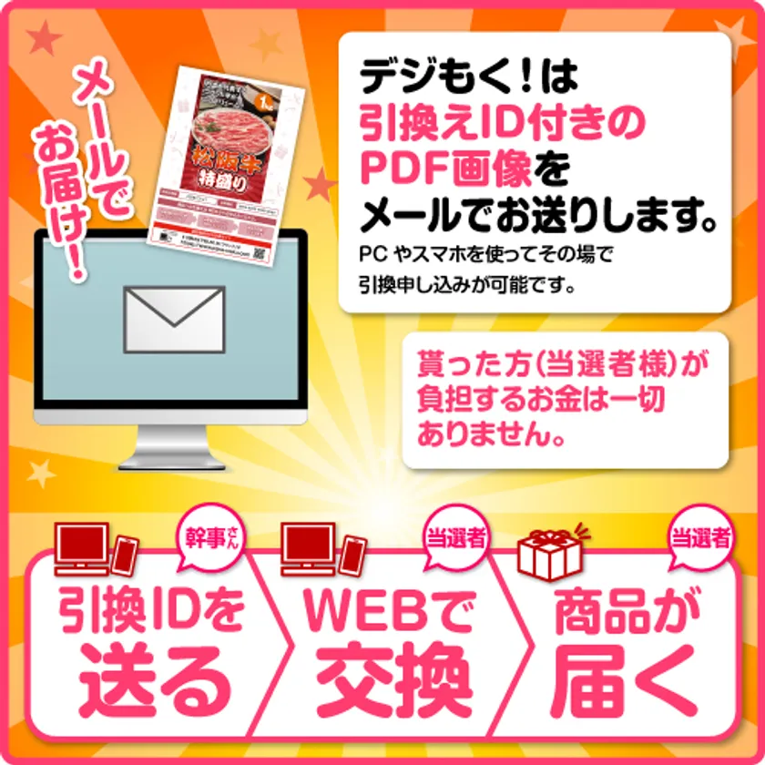 (3) イベント終了後、幹事さんから当選者(受賞者)に『デジもく!』(デジタル景品目録)を配布