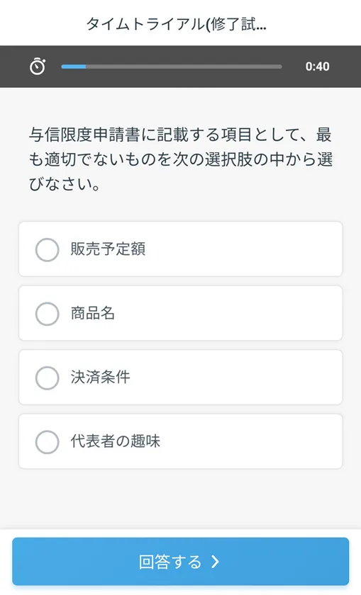 ビジネス実務与信管理検定試験3級 繰り返しトレーニング スマートフォン画面