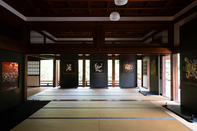 臨済宗大本山建仁寺塔頭 両足院(京都市東山区)は、現代アーティスト山田 晋也の展覧会「胎内衆会 ーぼくらは何処にかえるのだろう」を2020年9月19日(土)から10月10日(土)の期間にて開催します。本展覧会は、絵画作品16点を両足院に展示し、方丈に面する日本庭園と抽象絵画が織りなす独自の空間が特徴です。また方丈内陣に在る本尊「阿弥陀如来立像」を覆うように作品を展示し、作品を通して阿弥陀如来立像を拝するなど、展示そのものが新たな鑑賞体験として構成されています。