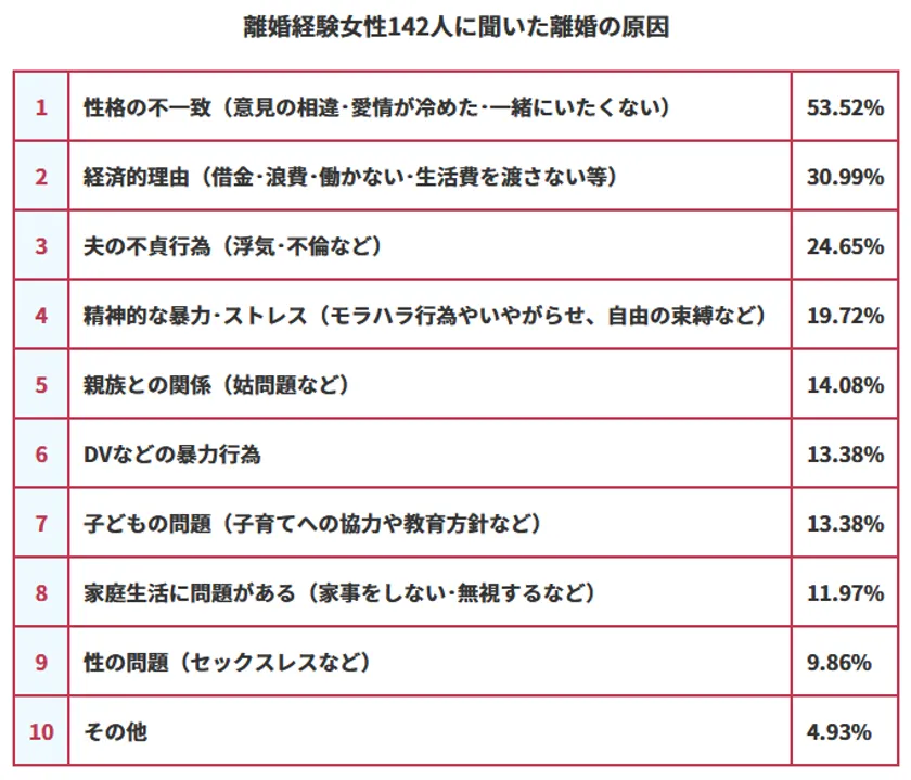 離婚経験女性142人に聞いた離婚の原因