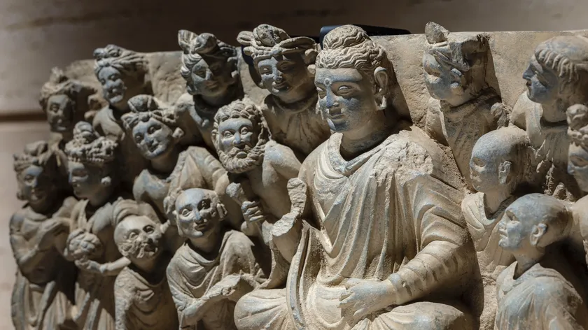 特集展示にも出展される仏伝浮彫「梵天勧請」、「初転法輪」、「王の帰依と涅槃」などを中心に、ガンダーラの仏教美術に表された釈尊の生涯を辿ります。