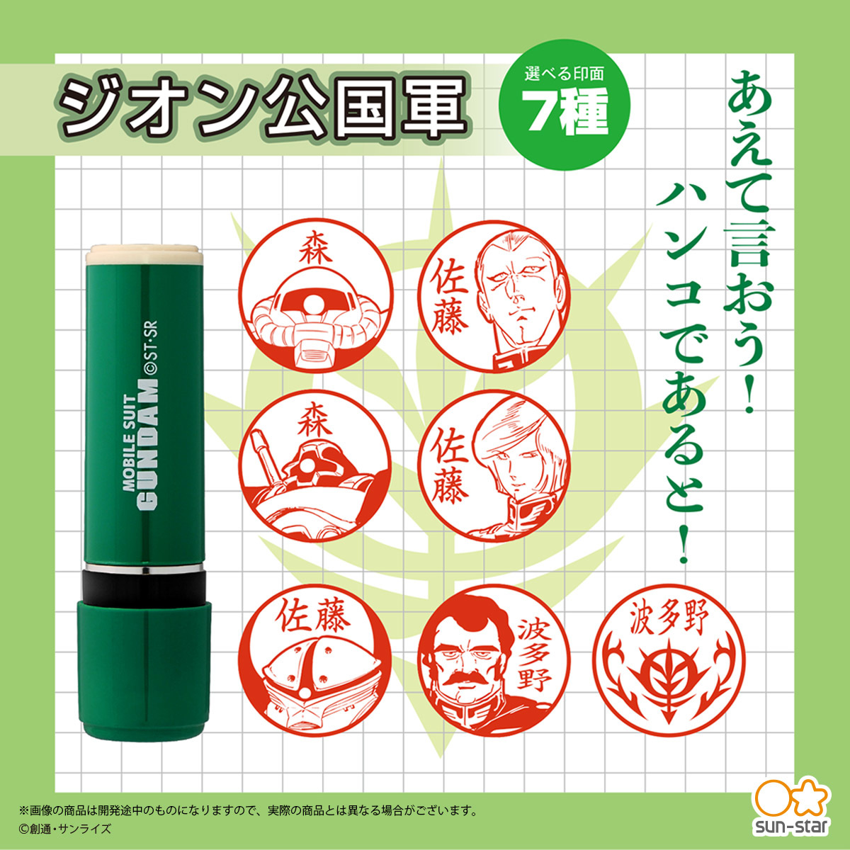 本商品は『機動戦士ガンダム』のキャラクターやマーク等と、好きな名前(3文字以内)を入れて印鑑を作れるハガキオーダー式の印鑑です。