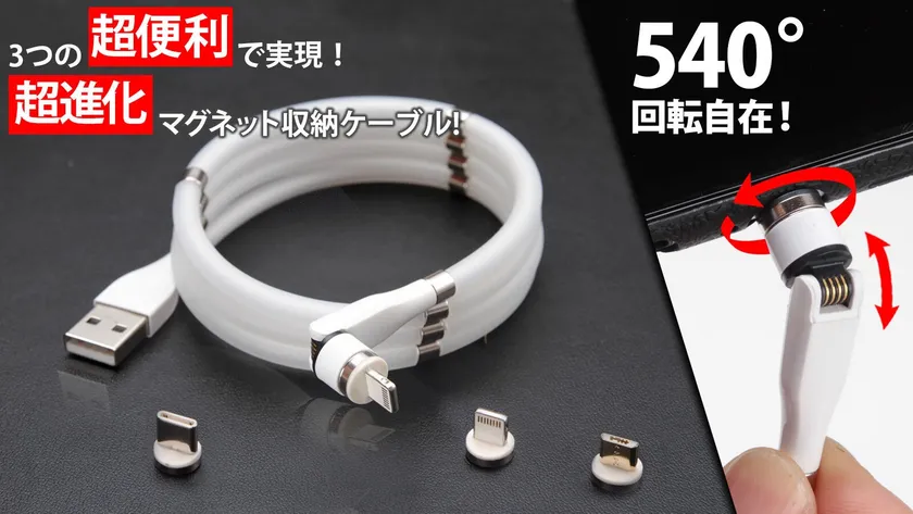540°回転端子!どの端末もパチッと充電! 超進化マグネット収納ケーブル! 「Magnetic Auto-Storage Cable」をMakuakeで先行販売開始